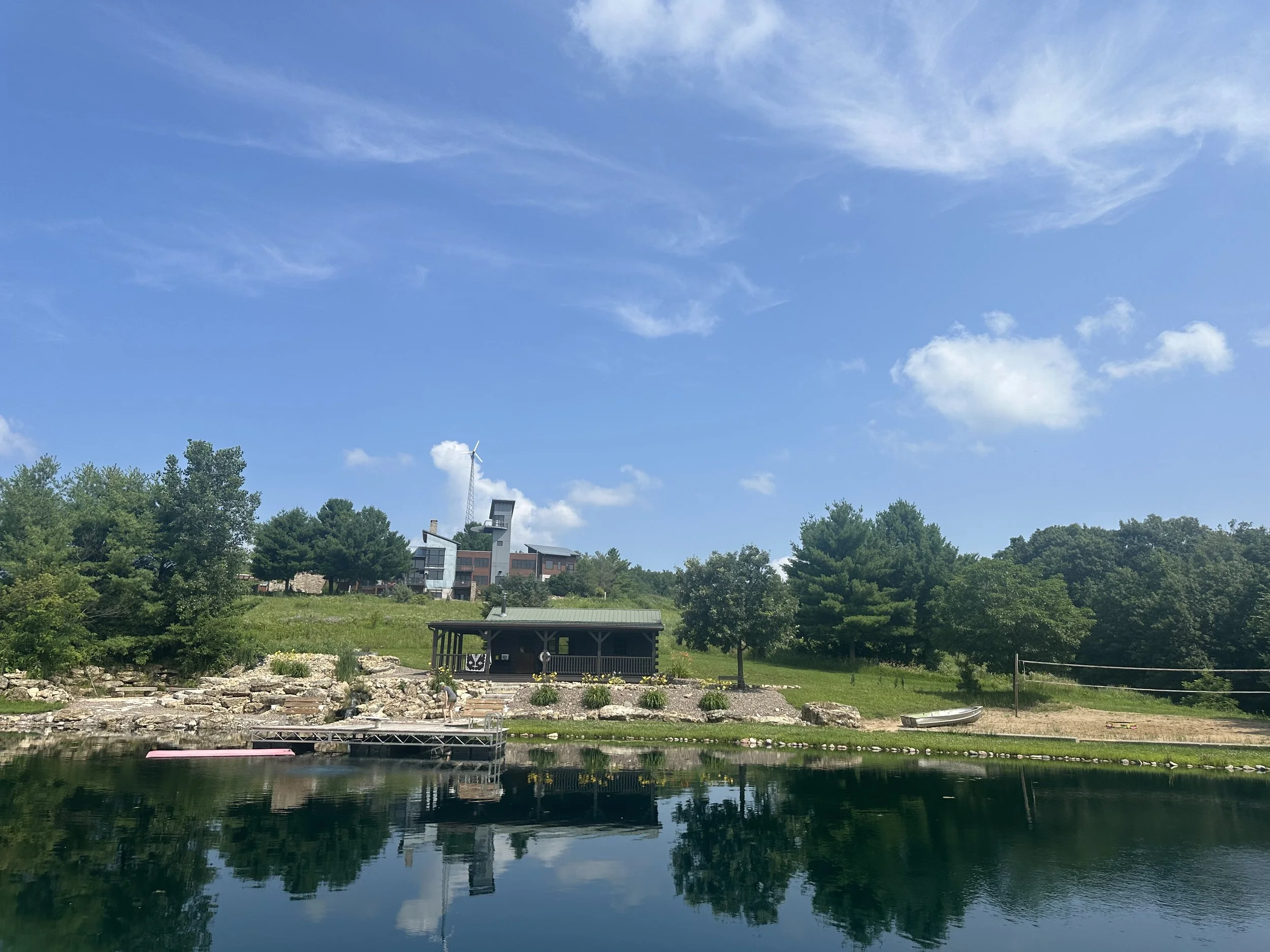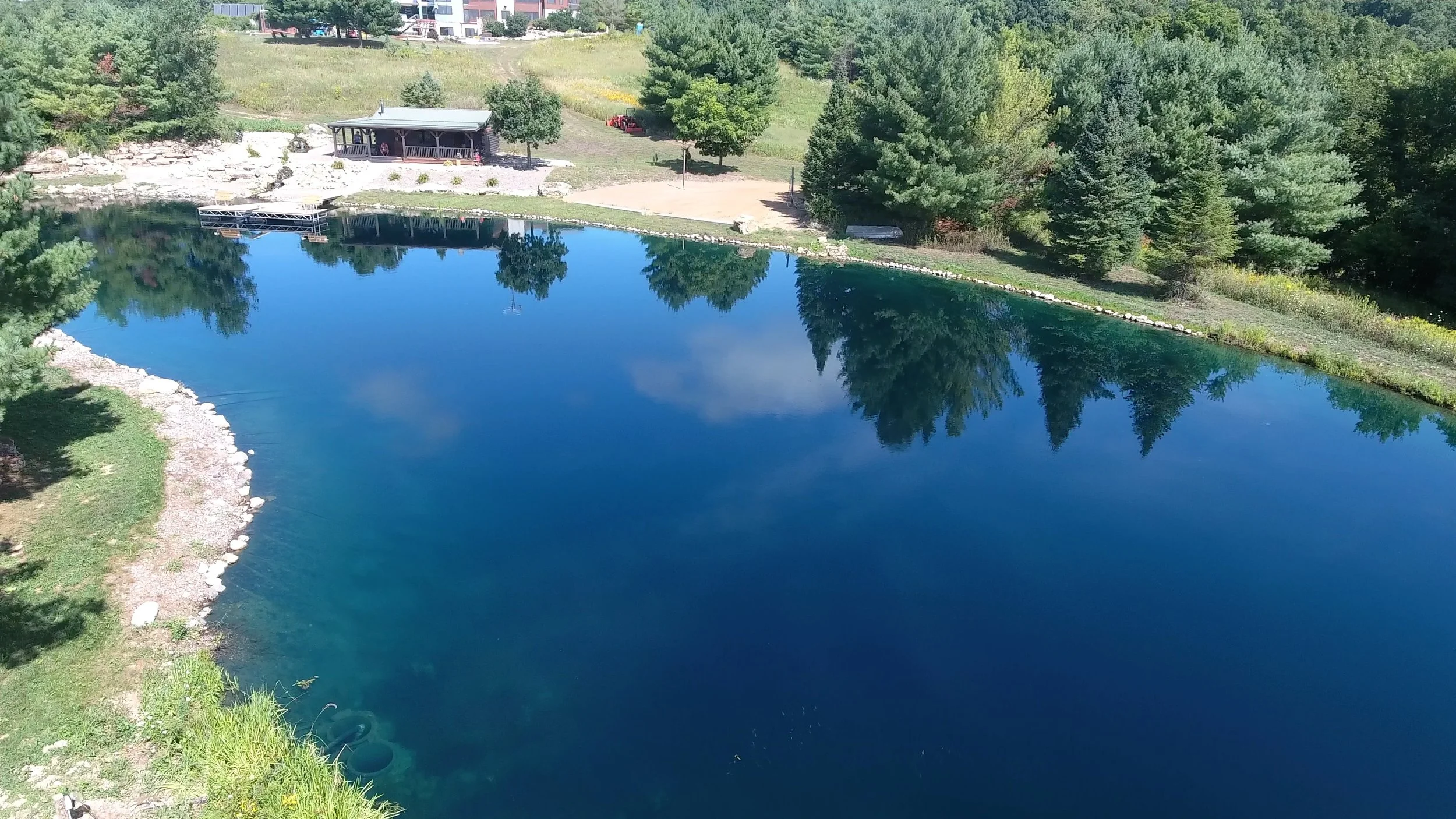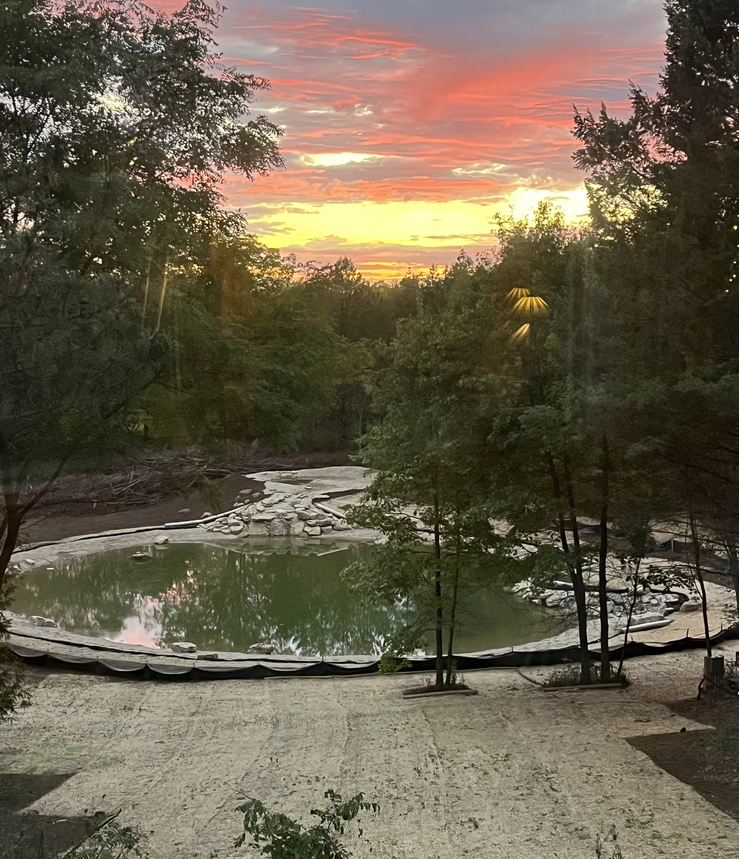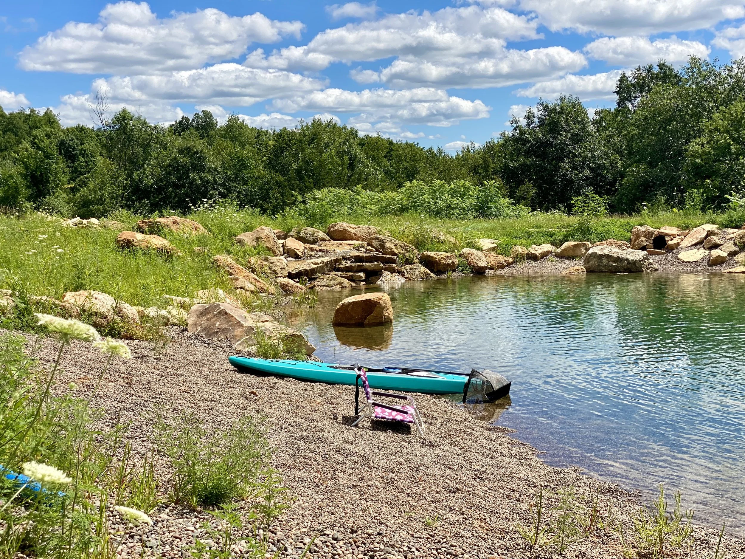Pond enlarged for geothermal sizing, swimming and kayaking.
