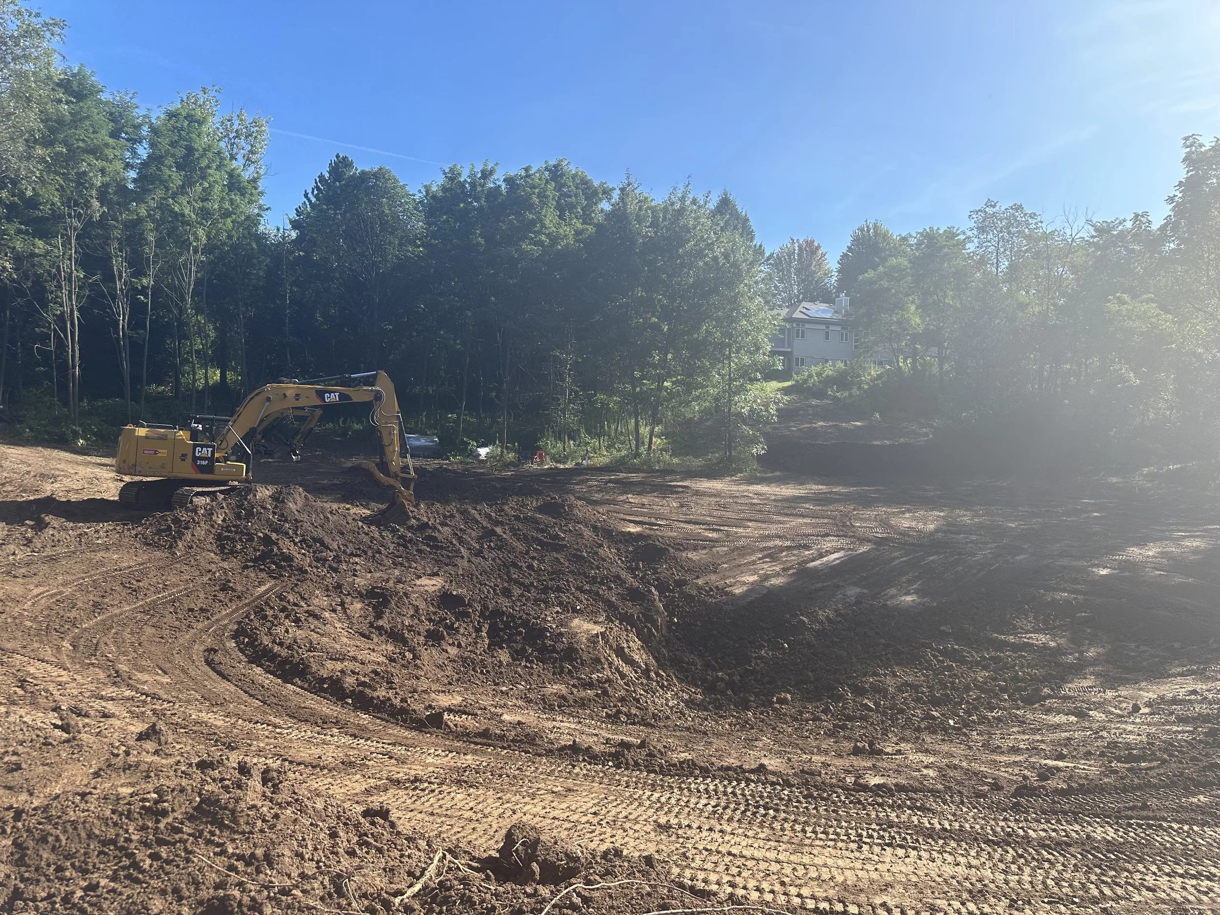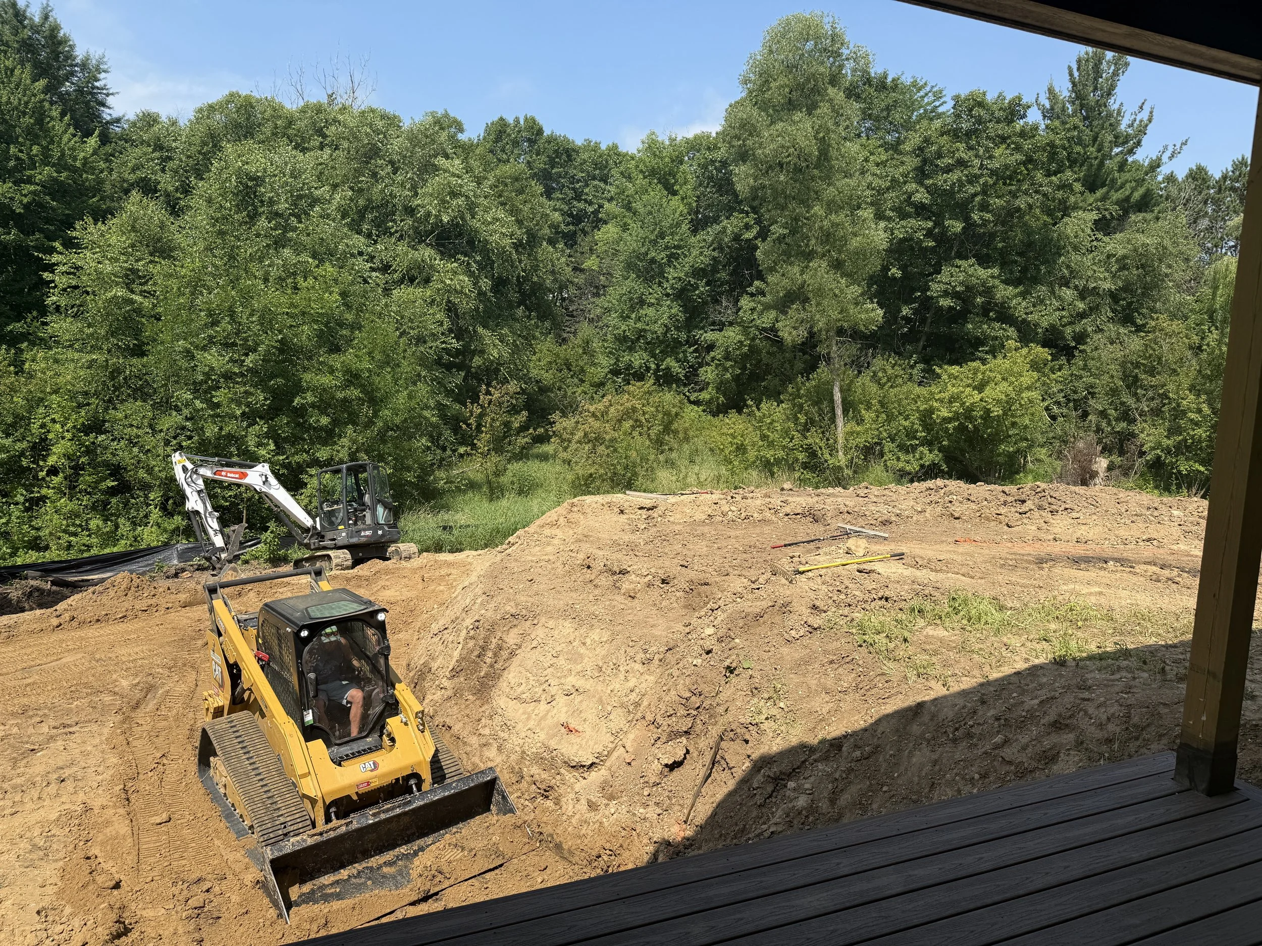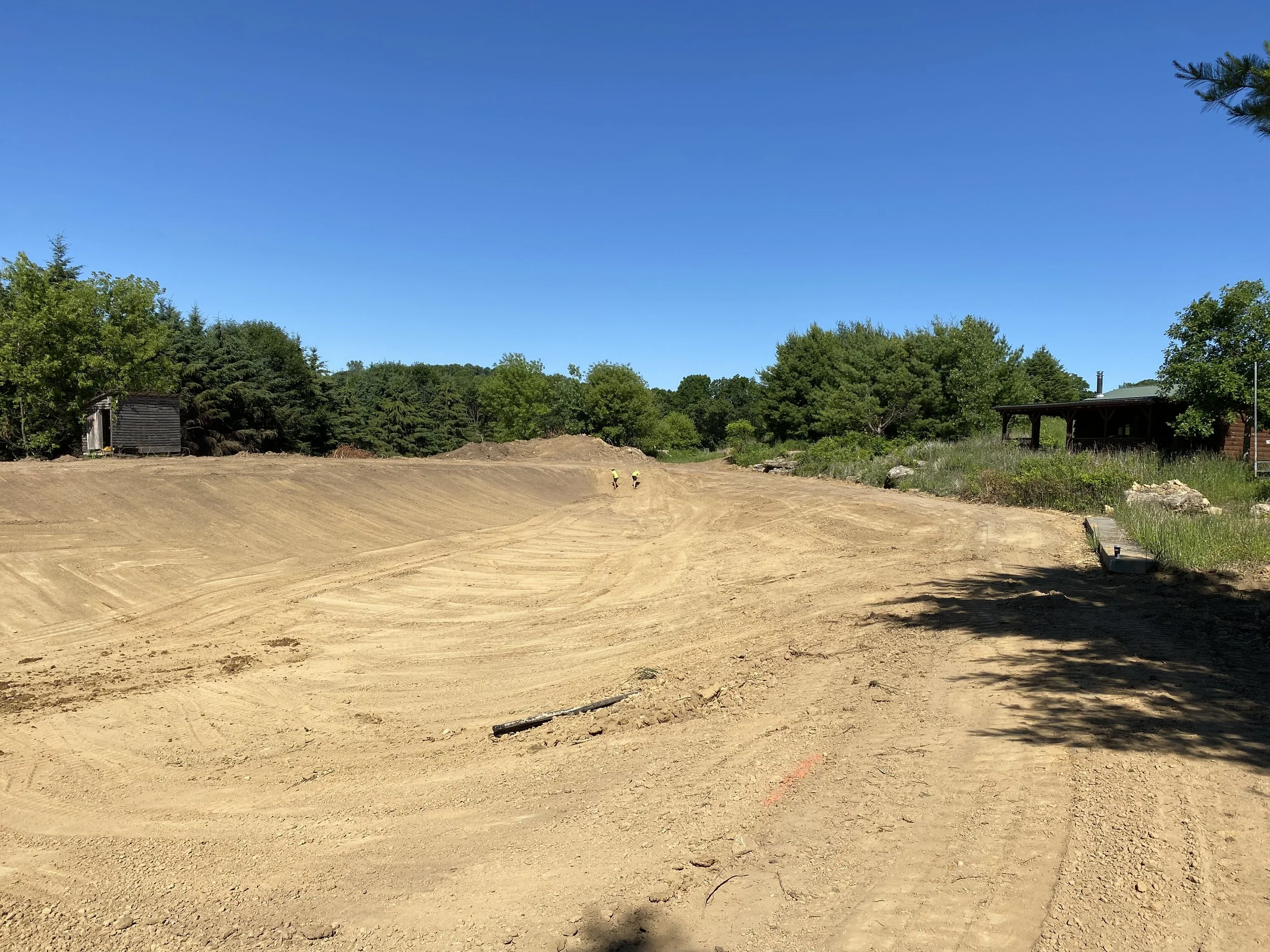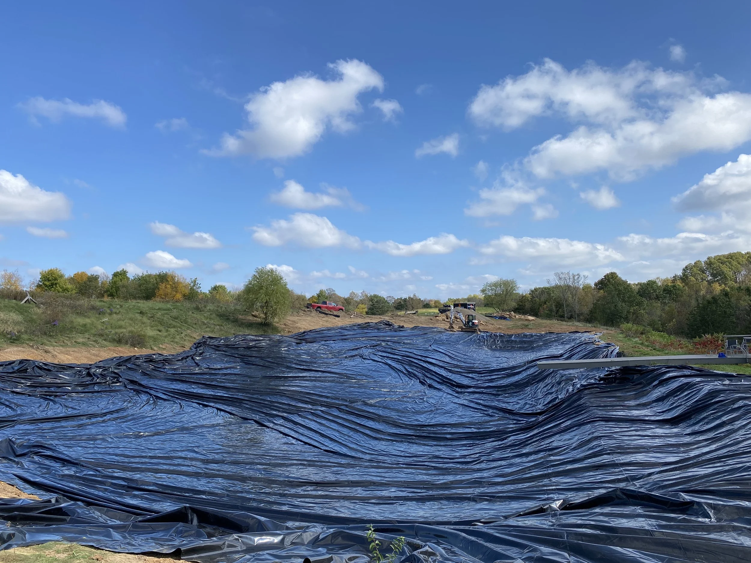 We built a temporary pond to house the fish, excavated to a depth of 20’ and enlarged the pond by a half acre. We built a wetland filtration system with waterfalls and a intake bay for skimming.