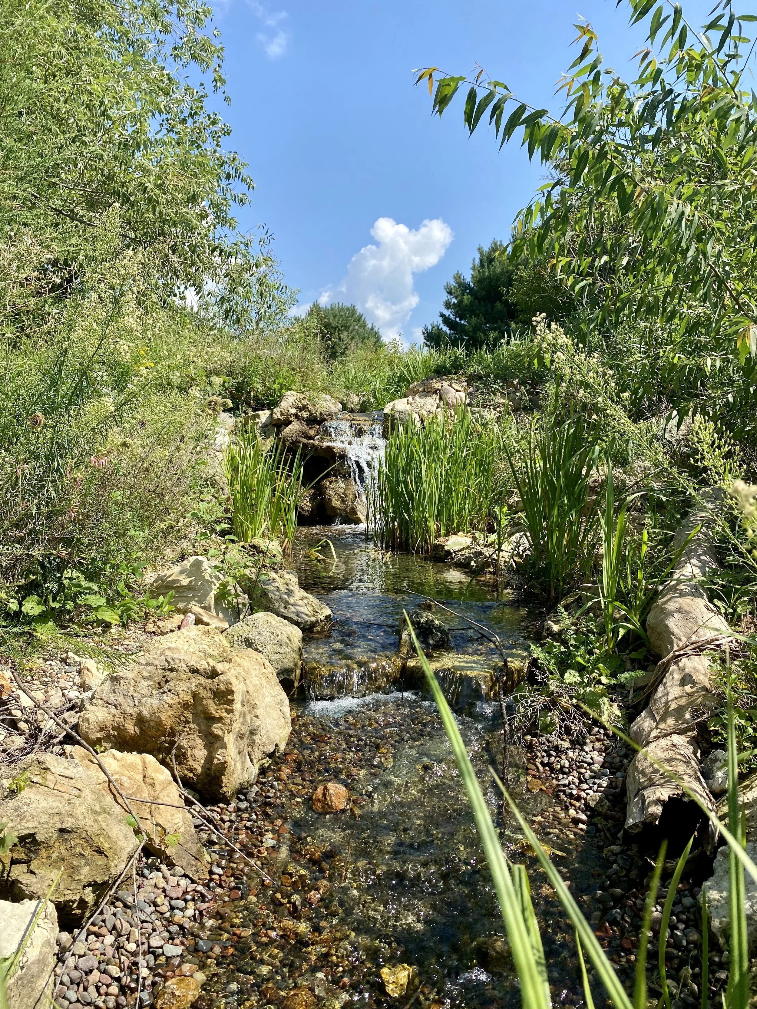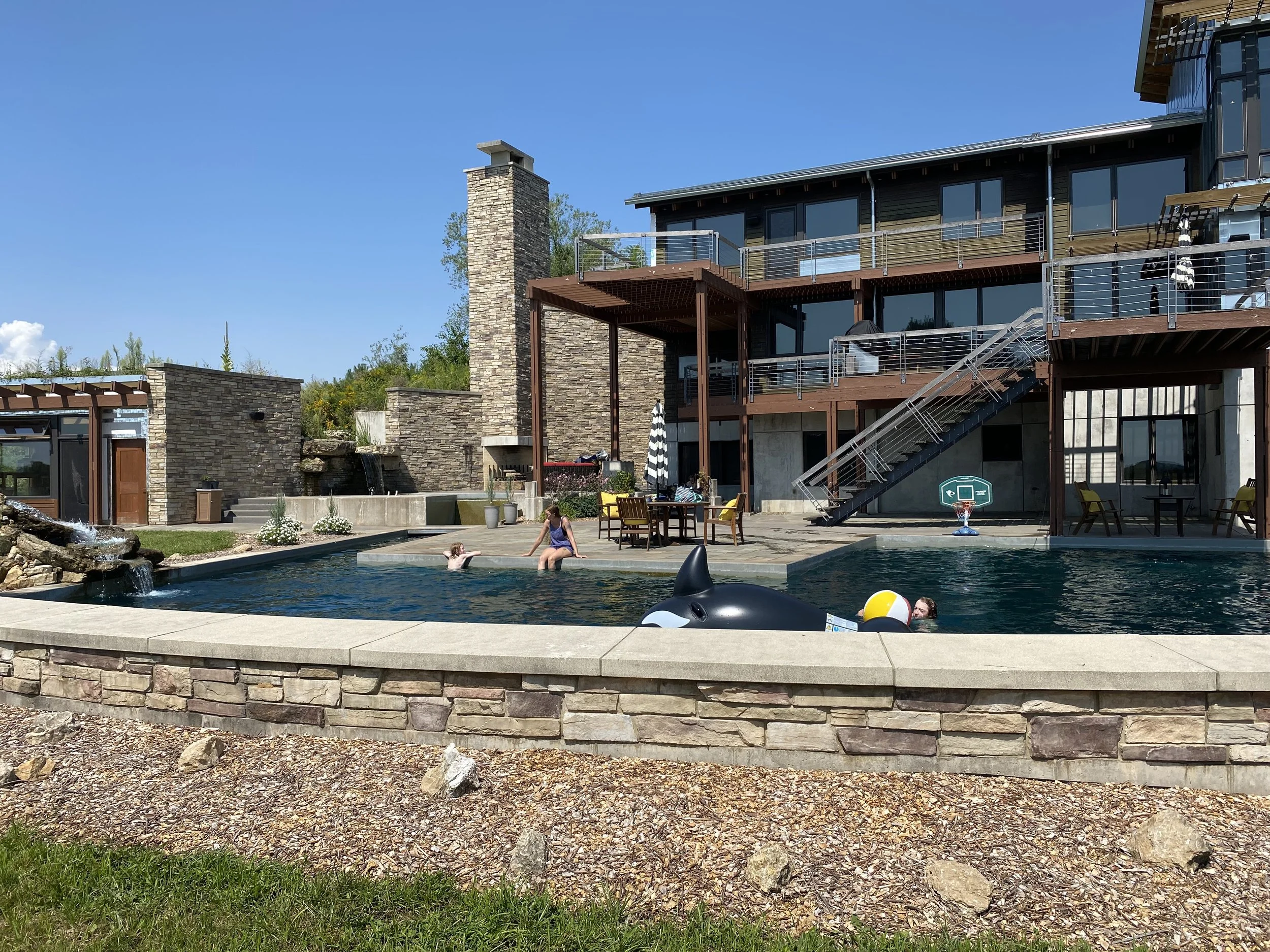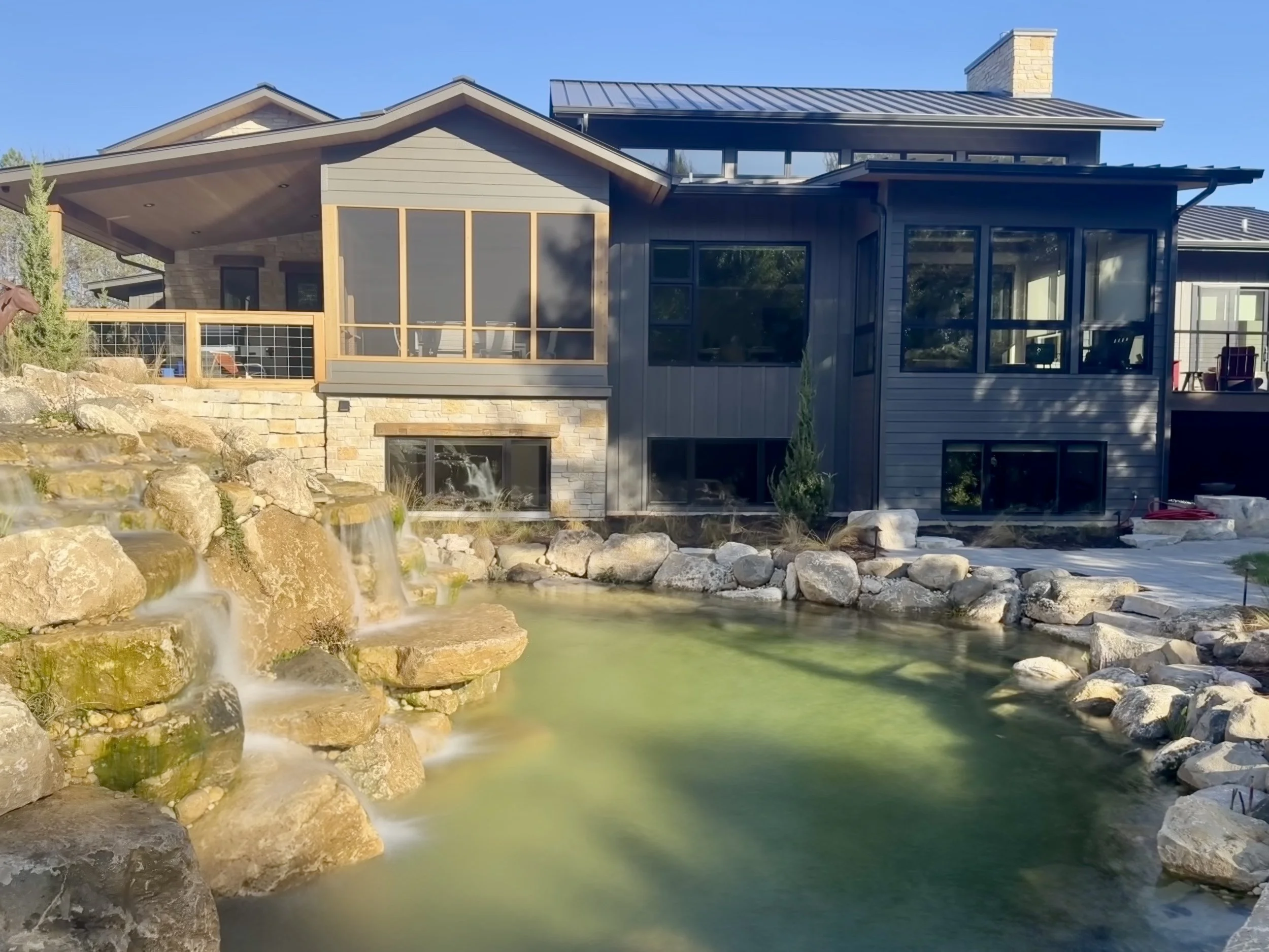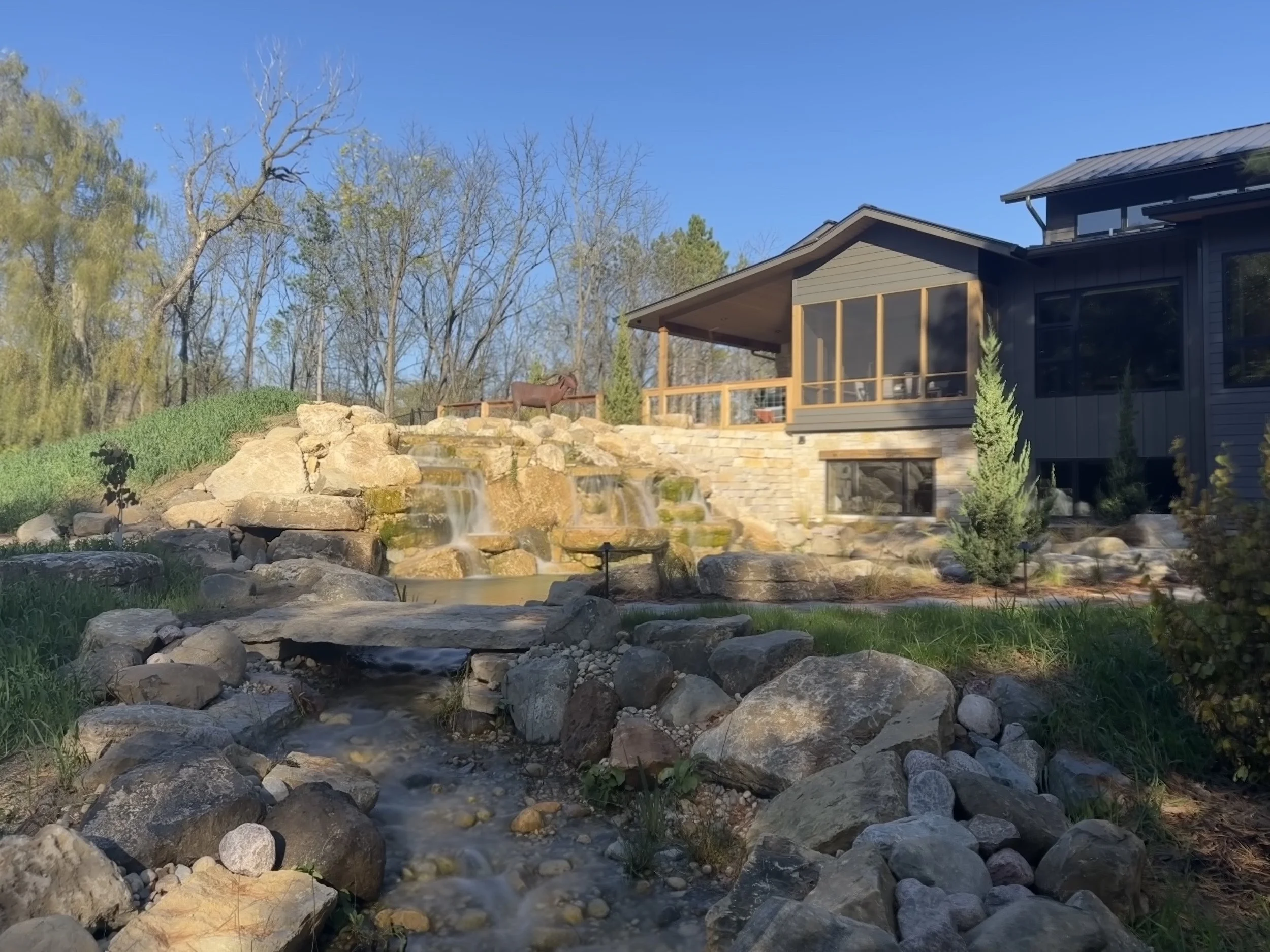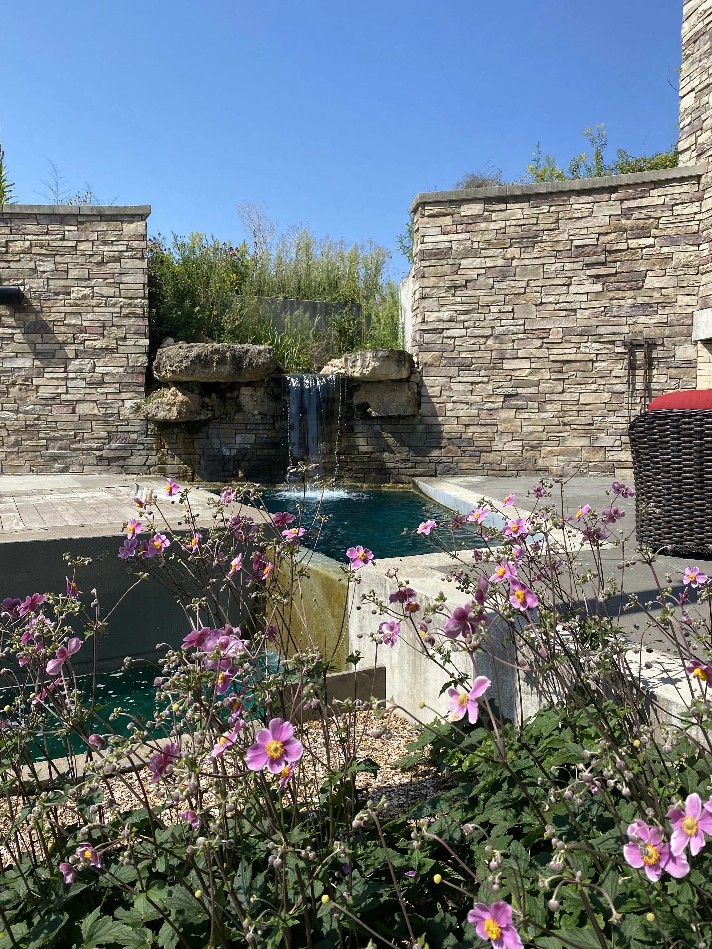 A striking, cascading waterfall with a dedicated space to cool off and swim during the summer months.